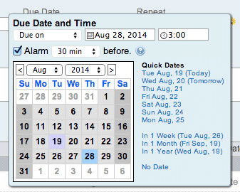 Never forget your to-dos again. Use alarms to make sure that you never forget a task. Simply give a task a due-date and tell Toodledo when you want your alarm to go off. Reminders can be sent to any of the following places:
