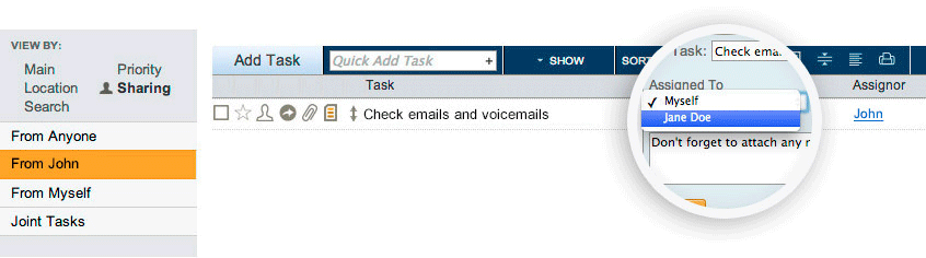 Tasks can be reassigned to someone else, or even shared between multiple team members as a joint task.