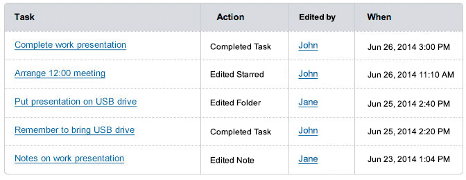 Keep everyone up to date. Each time a joint task or reassigned task is edited, the action is logged for the invested collaborators to see. You can also register for email alerts when changes are made to tasks that you have an interest in.